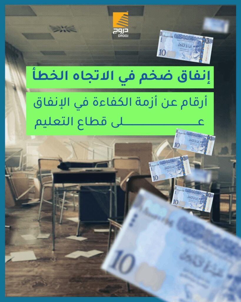 يُعد قطاع التعليم في ليبيا من أكثر القطاعات استنزافا للموارد العامة، إذ يوجَّه الجزء الأكبر من ميزانيته للباب الأول المتعلق بالرواتب، والذي يمثل نحو 91% من إجمالي الإنفاق التعليمي، مقابل 7% فقط للنفقات المخصصة للبنية التحتية. هذا الخلل في التوزيع المالي أدى -بحسب تقرير لليونيسف- إلى تدهور المرافق التعليمية ونقص الصيانة والتجهيزات، في حين لا يتناسب حجم الإنفاق على الرواتب مع عدد الطلاب أو جودة المخرجات التعليمية.